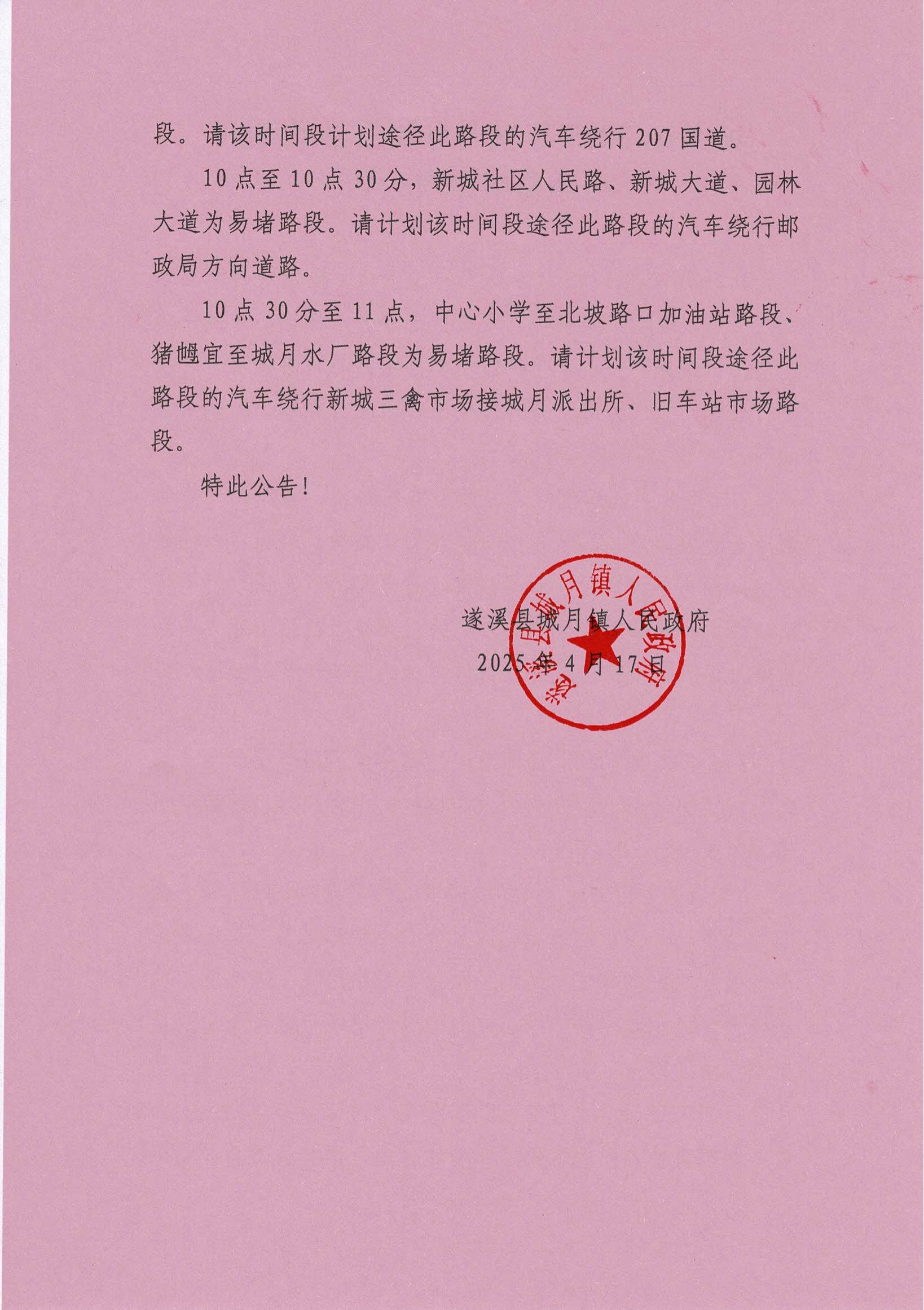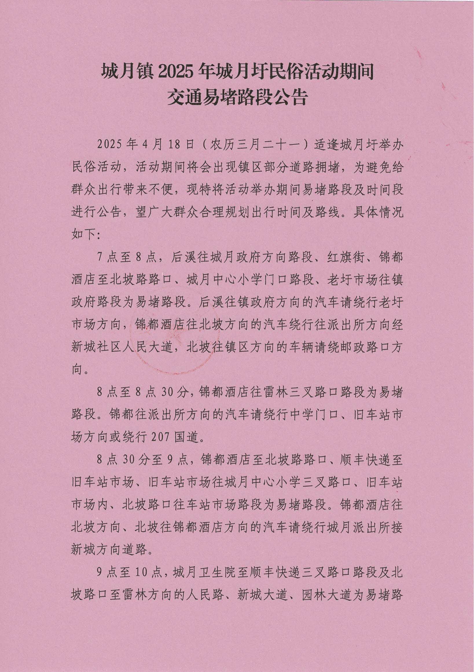 城月镇2025年城月圩民俗活动期间交通易堵路段公告