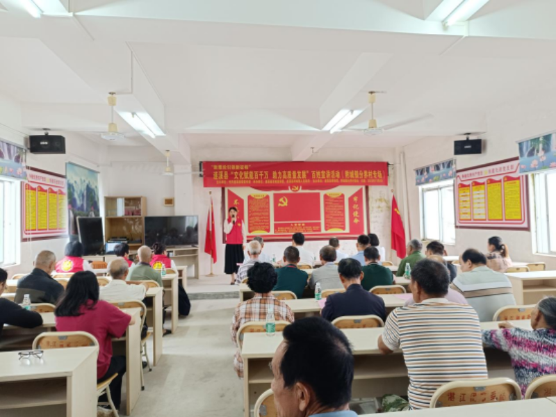 11月8日,遂溪县百姓宣讲团“新理论引领新征程”系列宣讲活动走进附城镇分界村、官湖村和白水初级中学,宣讲活动以粤曲、朗诵、故事、串台歌等丰富形式引导干部、群众、师生深入学习贯彻党的二十大精神和习近平总书记视察广东重要讲话重要指示精神,现场活动气氛高涨,宣讲员的精彩表演赢得了观众的一阵阵掌声。