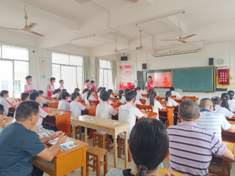 “习近平总书记是今年什么时候来到广东视察的?”“习近平总书记在麻章湖光镇金牛岛红树林片区考察时,他强调红树林是我们的什么?”在白水初级中学的课室里,宣讲活动正如火如荼开展,主持人向学生发起了提问,同学们纷纷举手抢答,现场气氛更加热闹了。通过有奖问答环节,让同学们更加牢记习近平总书记的殷殷嘱托。随后,在宣讲员的演讲中,同学们重温了广东南路地区第一名女共产党员钟竹筠为革命事业奉献一生的英勇事迹,许多同学流下了感动的泪水,大家为她坚强不屈的意志和勇于奉献的精神所震撼,并表示要继承革命先辈遗志,以革命先烈为榜样,认真学习,发奋图强,为实现国家富强、民族复兴贡献自己的力量。