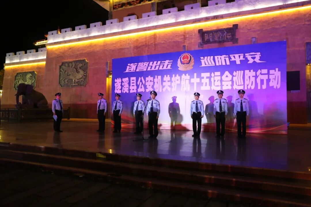 为全面贯彻落实省公安厅、市公安局“百日行动”决策部署,营造严打快打浓厚氛围,强力震慑不法分子,全力压降街面违法犯罪警情案件,坚决维护社会稳定、保障人民安宁,以实际行动护航全国第十五届运动会顺利举行,10月21日晚,遂溪县公安局在孔子文化城启动开展“遂警出击 巡防平安”护航十五运会巡查宣防集中统一行动,向全县人民和社会各界展示遂溪公安队伍的昂扬斗志、团结精神和必胜信心。
