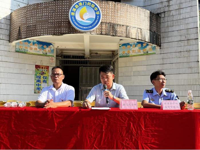 又是一年金秋开学季,为进一步加强校园禁毒宣传力度,提高中小学生的识毒能力和禁毒意识,9月1日,港门镇禁毒办联合县市场监督局、港门司法所、派出所、港门共青团到港门中学开展“开学第一课,禁毒我先行”禁毒暨校园安全宣传活动。