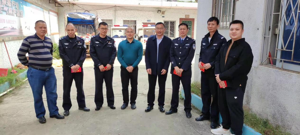 在北潭派出所,詹仲茗书记、岑志东镇长向节日期间坚守在工作岗位上的一线民警致以节日的问候和诚挚的祝福。希望大家继续发扬光荣传统,执好勤,站好岗,为保障界炮有序安全,为全镇经济社会发展稳定作出新的更大贡献。