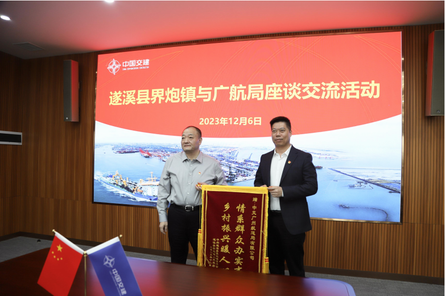 在广航局座谈会上,公司党委副书记、纪委书记、工会主席、监事会主席刘晓兵对梁李兴书记一行的到访表示欢迎,并介绍公司近年来在助力乡村振兴上所取得的成绩,他指出,公司积极践行“中交助梦”品牌理念,大力支持界炮镇乡村振兴工作,与广 东省消防救援总队通力配合,充分发挥行业优势,为界炮镇人民 办实事、做好事,以实际行动展现了央企担当。他要求,公司驻镇帮镇扶村工作队要注重发挥好联络职责,跟地方政府做好工作沟通,结合界炮镇特点,发挥各自优势,加强深度合作,助力界炮镇打造乡村振兴新样板。