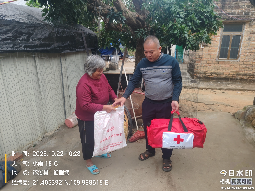 近日,受台风“麦德姆”影响,我镇部分地区出现强风及强降雨天气,对部分群众的生产生活造成了一定影响。为切实帮助受灾群众渡过难关,保障其基本生活需求,10月22日,界炮镇人民政府副镇长陈志南同志代表遂溪县红十字会,深入我镇下属多个受影响的行政村,开展赈济家庭箱发放工作,将党和政府及社会各界的关怀与温暖送至受灾群众手中。
