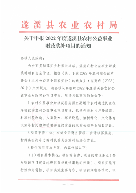 关于申报2022年度遂溪县农村公益事业财政奖补项目的通知