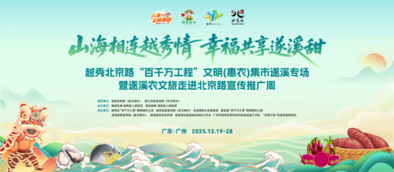 在千年商都广州的脉搏之地北京路,一场跨越山海的温情相约即将上演。12月19日至28日,“山海相连越秀情幸福共享遂溪甜”——越秀北京路“百千万工程”文明集市-粤飨集遂溪专场暨遂溪农文旅走进北京路宣传推广周,将在北京路天河广场粤飨集展馆隆重举行。