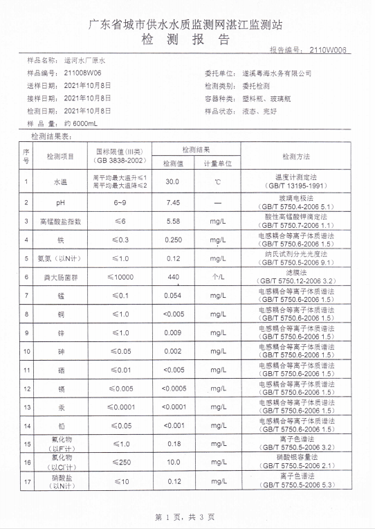遂溪粤海水务有限公司运河水厂原水检测报告.pdf