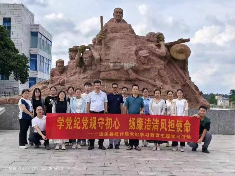 6月28日,遂溪县统计局党组书记、局长陈德带领局全体党员干部到雷州青年运河红色教育基地,开展“学党纪党规守初心   扬廉洁清风担使命”党纪学习教育主题党日活动。
