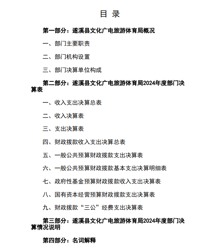 | 名称: | 2024年度遂溪县文化广电旅游体育局部门决算 | ||