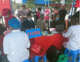 活动现场,医务人员热情为来往群众做健康咨询,健康宣教,免费测血糖、血压、听诊、测试眼睛等方面的服务。