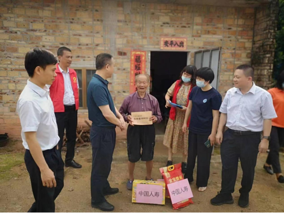 2023年5月19日下午,热浪滚滚,骄阳似火,之后下起了滂沱大雨,湛江市卫健局党组成员三级调研员彭启雄、中国人寿湛江分公司副总经理蔡国锋、遂溪卫健局陈东标副局长、遂溪计生协负责人庞秋、中国人寿保险公司遂溪支公司龙阳生经理在镇政府分管领导及村支部书记陪同下,带领计生协和保险公司工作人员及志愿者分别到遂溪城月、乌塘、杨柑、遂城镇走村串户开展计生失独家庭走访慰问活动。