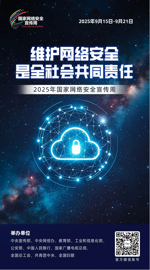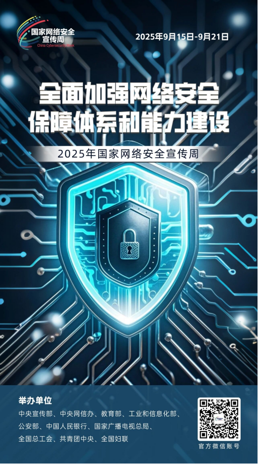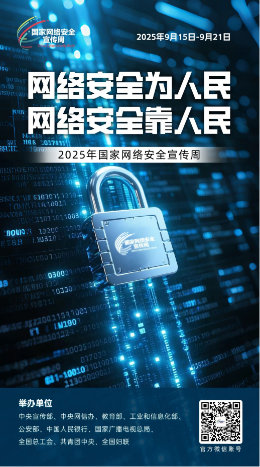 据介绍,2025年国家网络安全宣传周由中央宣传部、中央网信办、教育部、工业和信息化部、公安部、中国人民银行、国家广播电视总局、全国总工会、共青团中央、全国妇联等部门于9月15日至21日在全国范围内统一开展,将于9月15日在云南省昆明市举行开幕式。今年网安周的主题是“网络安全为人民,网络安全靠人民——以高水平安全守护高质量发展”,将深入学习宣传贯彻习近平总书记关于网络强国的重要思想,认真落实习近平总书记对网络安全工作“四个坚持”的重要指示精神,积极做好《网络安全法》《数据安全法》《个人信息保护法》《关键信息基础设施安全保护条例》《网络数据安全管理条例》《互联网政务应用安全管理规定》等法律法规和政策文件宣贯工作,积极展现党的十八大以来网络安全领域的发展成就和重要成果,向全社会普及网络安全知识和技能。