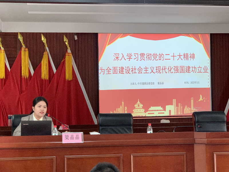 为深入学习宣传贯彻党的二十大精神,切实把广大党员干部群众的思想和行动统一到大会精神上来,根据县委宣传部统一部署,2023年3月14日,遂溪县学习宣传贯彻党的二十大精神宣讲活动走进杨柑镇,遂溪百姓宣讲团讲师,中共遂溪县委党校教研室副主任、四级主任科员梁晶晶受邀作专题宣讲。宣讲会由镇党委副书记、镇长袁伟强主持。镇全体职工干部、机关单位负责人及各村(社区)党组织书记等150余人聆听宣讲。