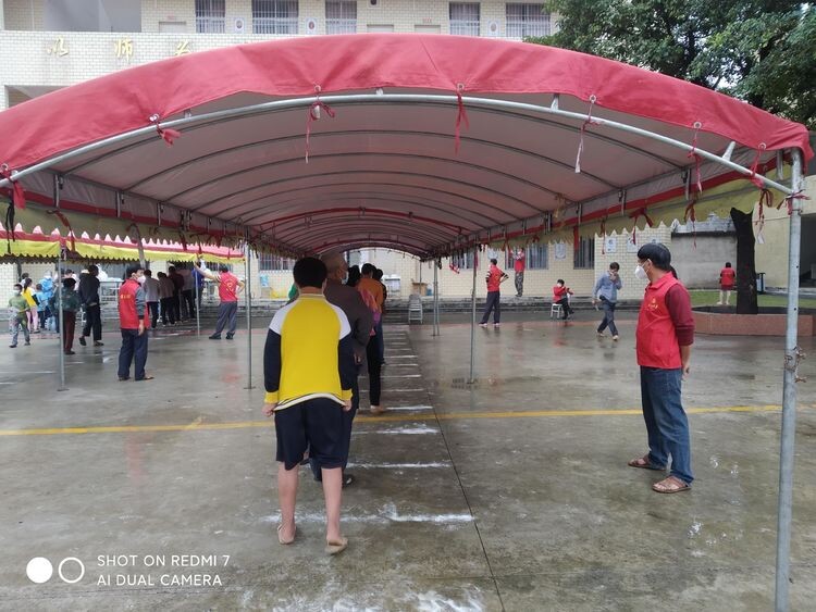 科学组织,有序开展。全镇上下树牢“一盘棋”思想,镇党政主要领导亲自指挥调度,镇村干部及志愿者全部下沉19个核酸采样点,党建三级网格员动员群众到位,确保一个不漏,各检测点党员志愿者化身“抗疫先锋”,引导村民有序排队、保持间距,提醒群众佩戴好口罩、测温、扫码。各临时党支部根据村民分布情况,实行错时分批检测,分时分段进入检测场地,确保人员不密集、数量可控制的高效率检测。工作人员熟练操作信息录入,医务人员快速精准开展核酸检测采样,大家配合默契,井然有序,做到引导有方式、登记有秩序、采集有效率的无缝对接。各临时党支部还设立后勤保障组、应急处置组、综合协调组等工作小组,确保整个过程安全高效、科学有序。