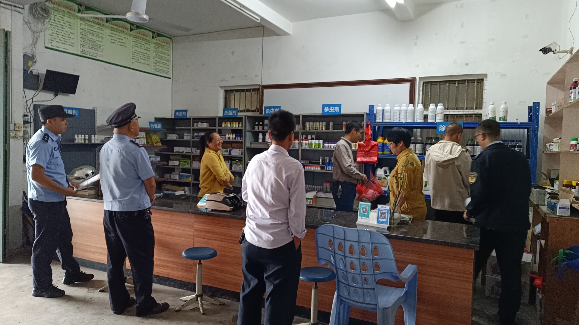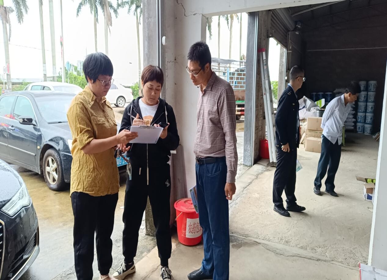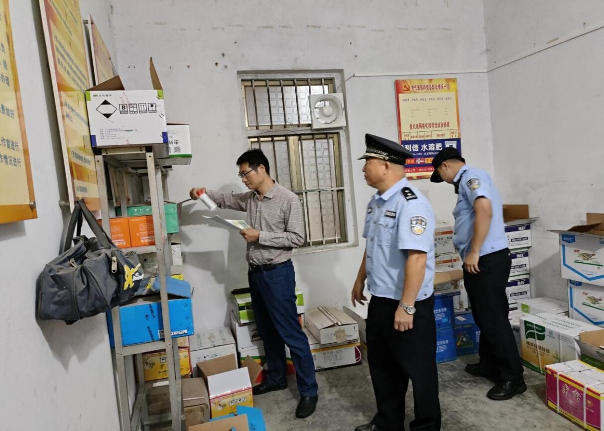 图为洋青镇执法部门对农资店进行检查
