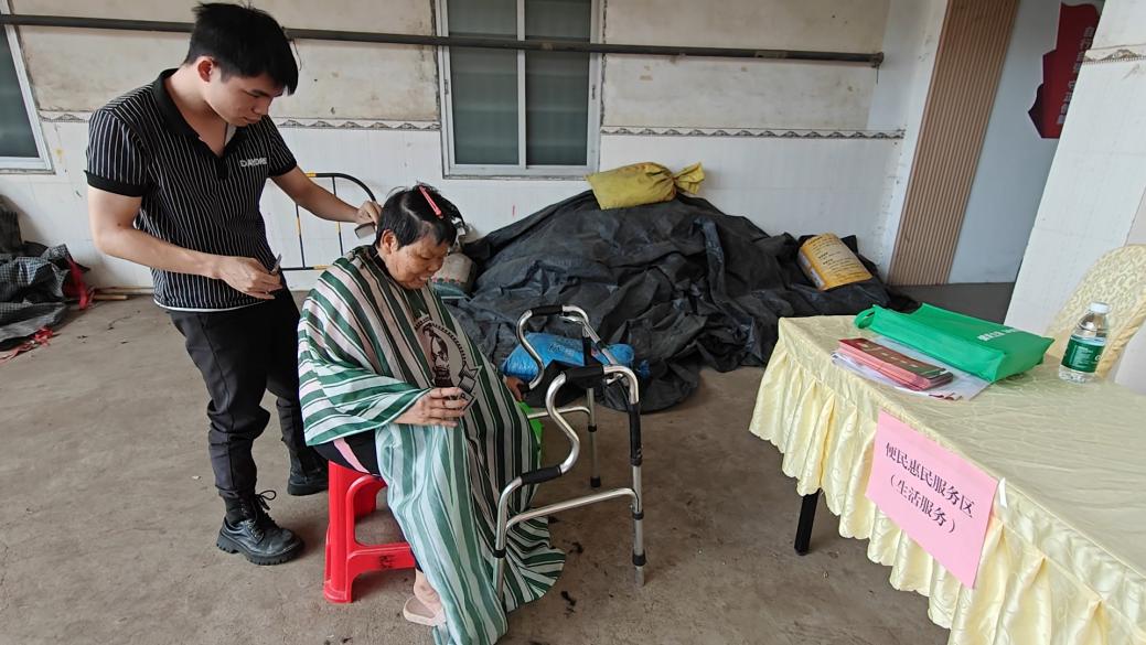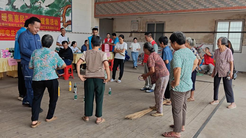 便民惠民服务区汇聚多重关爱,沙古卫生院医护人员提供血压血糖检测及健康咨询,洋青供电所通过趣味互动普及安全用电知识,党员志愿者与社工提供义务理发、小家电维修等贴心服务。活动现场,志愿者为独居老人樊奶奶精心修剪头发,老人揽镜笑言:“这手艺真好!剪去烦恼丝,人也精神多了!”睦邻文化互动区充满欢声笑语,社工引导的“套圈”“扔沙包”等小游戏吸引众多村民参与,有效促进邻里融洽。