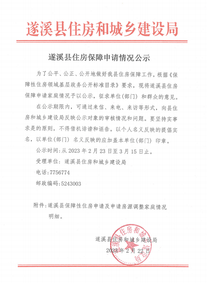 | 名称: | 遂溪县2023年住房保障调整公示 | ||