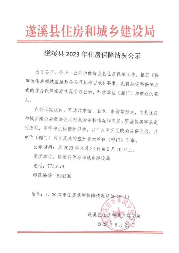 | 名称: | 遂溪县2023年住房保障情况公示 | ||