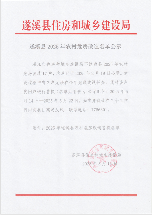 遂溪县2025年农村危房改造名单公示