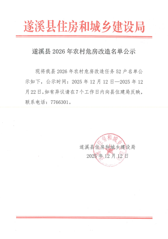 | 发布机构: | 湛江市遂溪县住房和城乡建设局 | 成文日期: | 2025-12-12 |