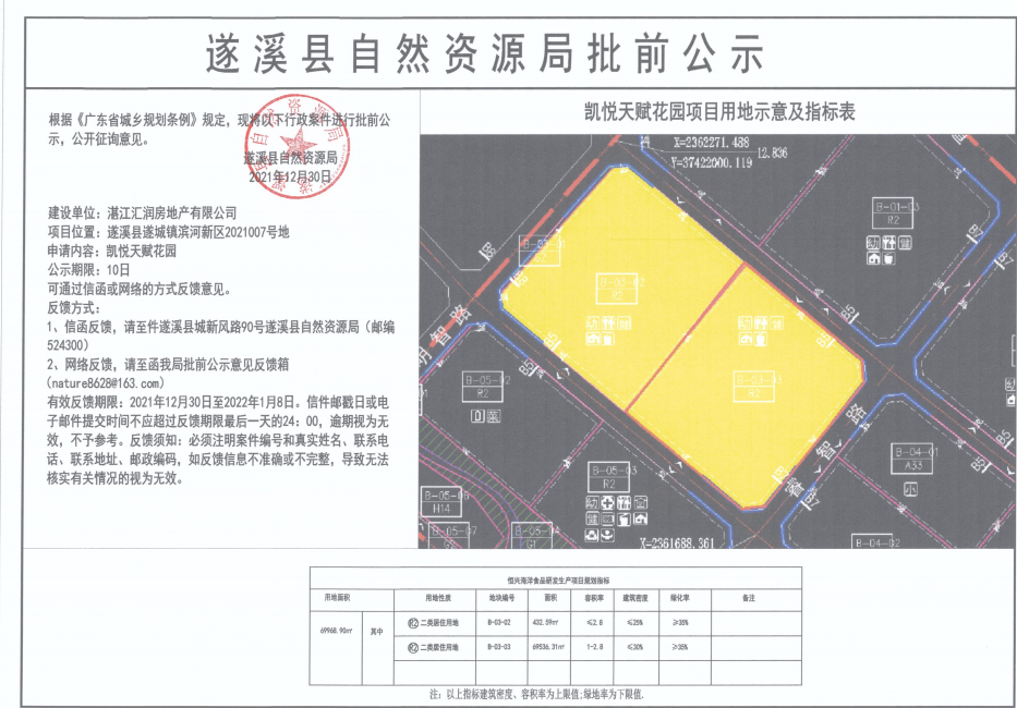 凯悦天赋花园项目用地批前公示