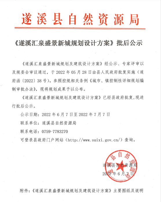 | 名称: | 关于《遂溪汇泉盛景新城规划设计方案》批后公示 | ||