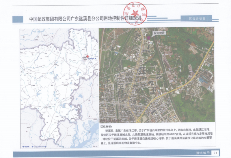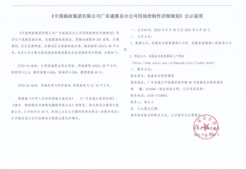 关于《中国邮政集团有限公司广东遂溪县分公司用地控制性详细规划》公示说明