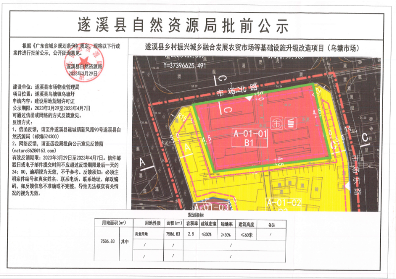 关于遂溪县乡村振兴城乡融合发展农贸市场等基础设施升级改造项目(乌塘市场)的批前公示