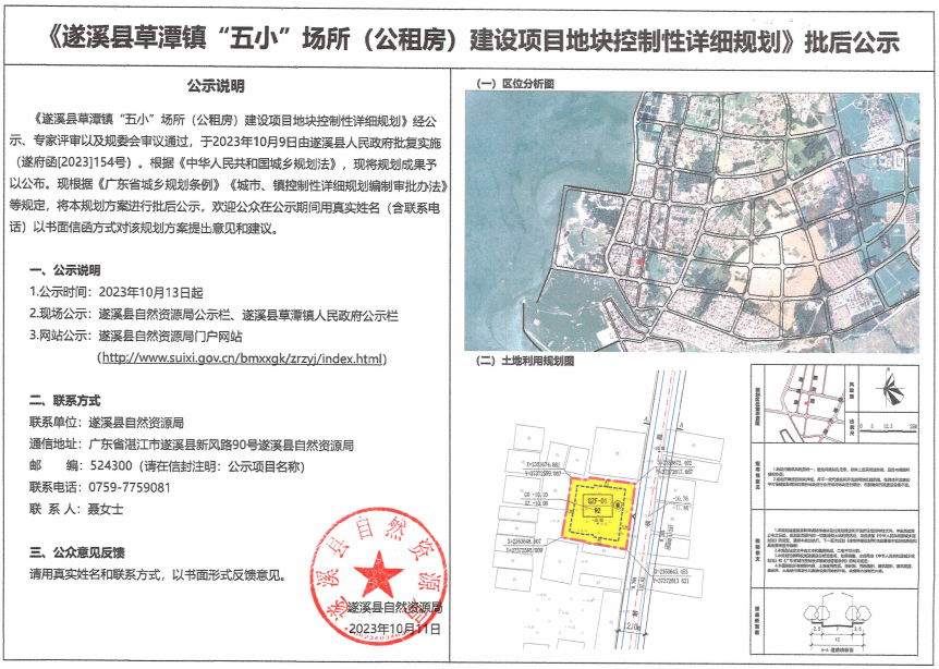 《遂溪县草潭镇“五小”场所(公租房)建设项目地块控制性详细规划》批后公示