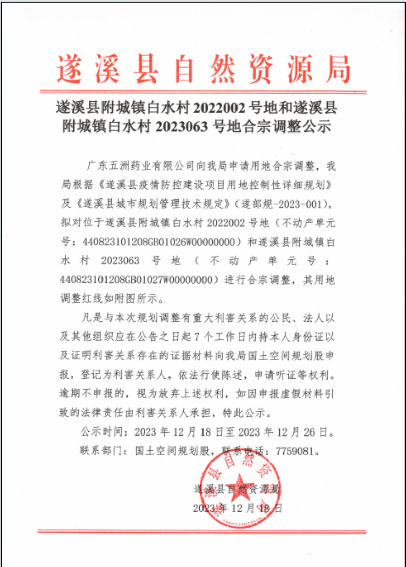 遂溪县附城镇白水村2022002号地和遂溪县附城镇白水村2023063号地合宗调整公示
