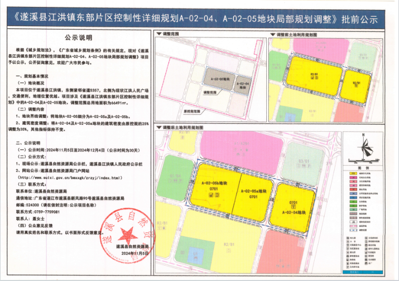 《遂溪县江洪镇东部片区控制性详细规划A-02-04、A-02-05地块局部规划调整》批前公示
