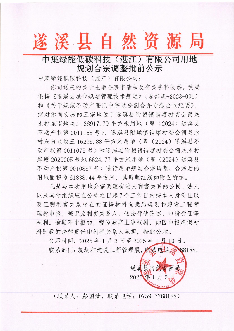中集绿能低碳科技(湛江)有限公司用地规划合宗调整批前公示