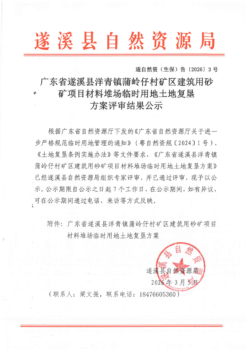 | 发布机构: | 湛江市遂溪县自然资源局 | 成文日期: | 2026-03-05 |