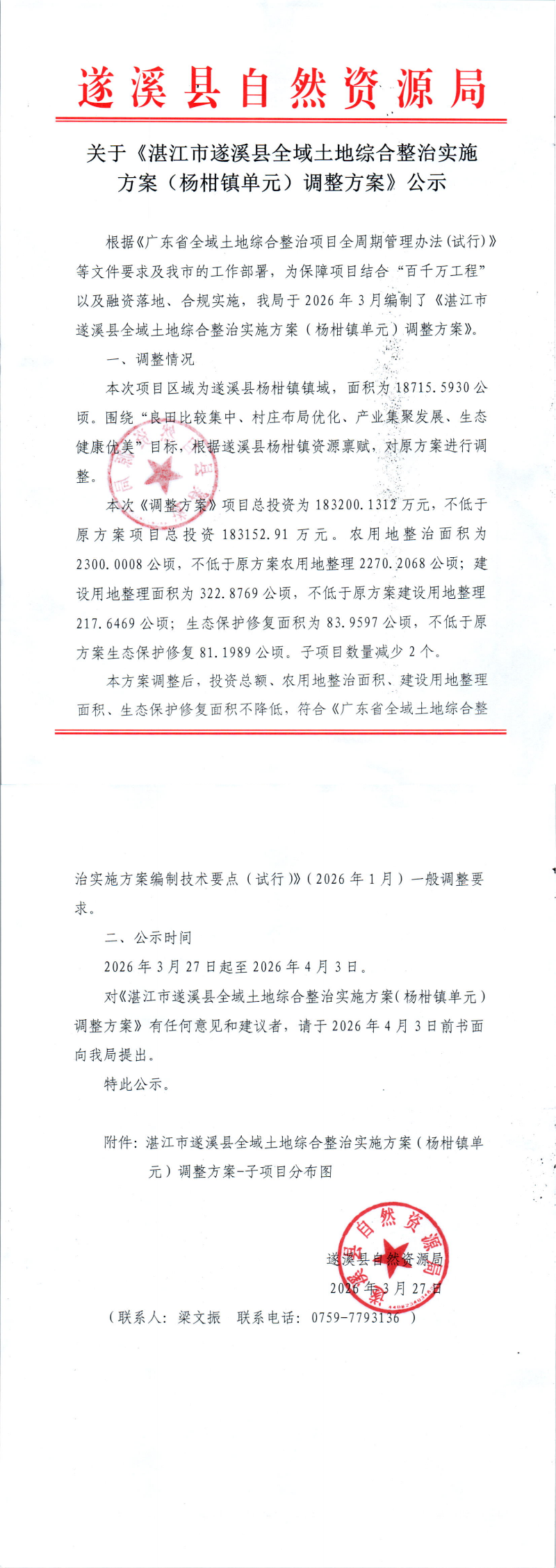 | 发布机构: | 湛江市遂溪县自然资源局 | 成文日期: | 2026-03-27 |