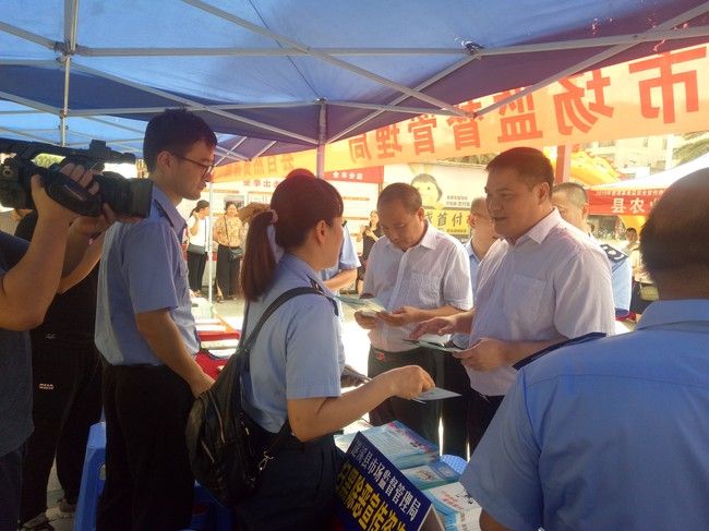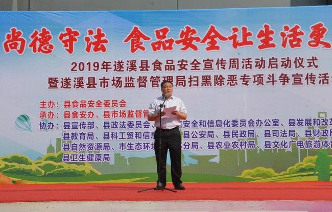 陈赵成局长宣布遂溪县食品安全宣传周开幕,并表示开展食品安全宣传周活动,进一步展示了遂溪县食品安全监管工作成绩的大好机遇,推动食品安全宣传活动走进千家万户,搭建食品安全“人人参与、社会共治”的绝佳平台。