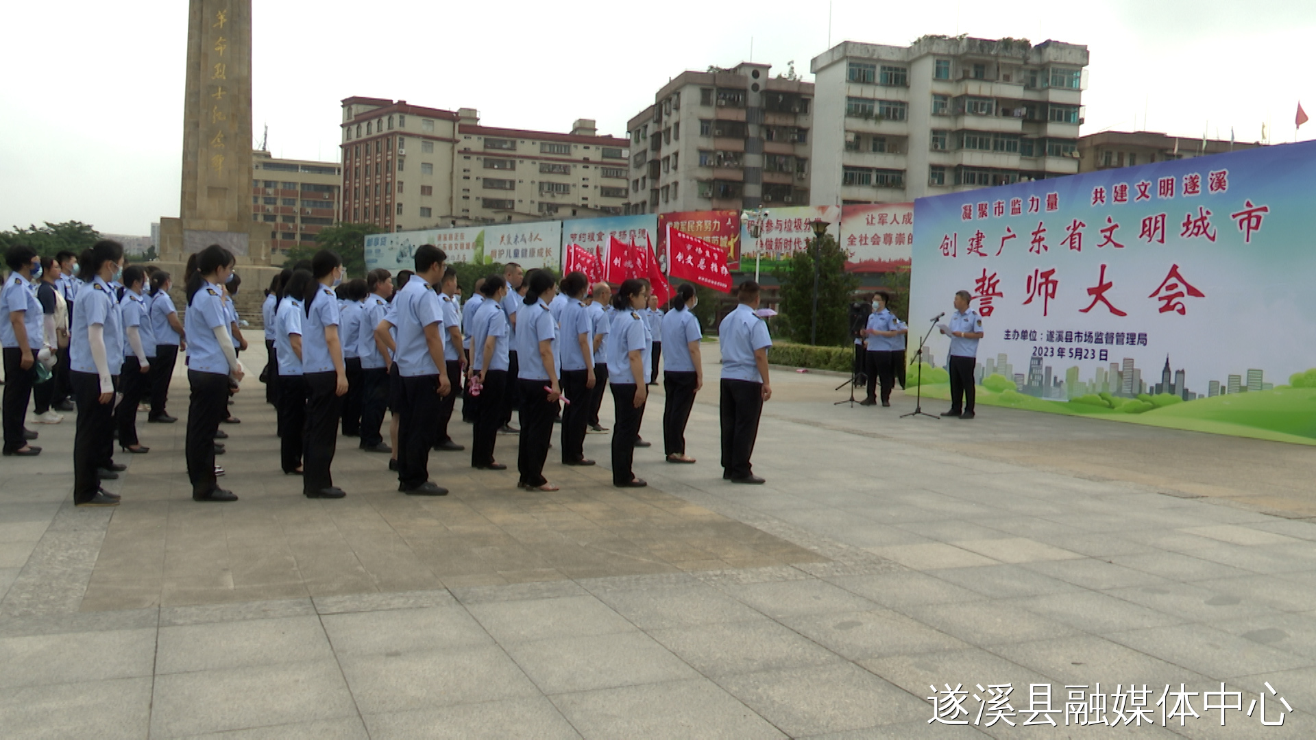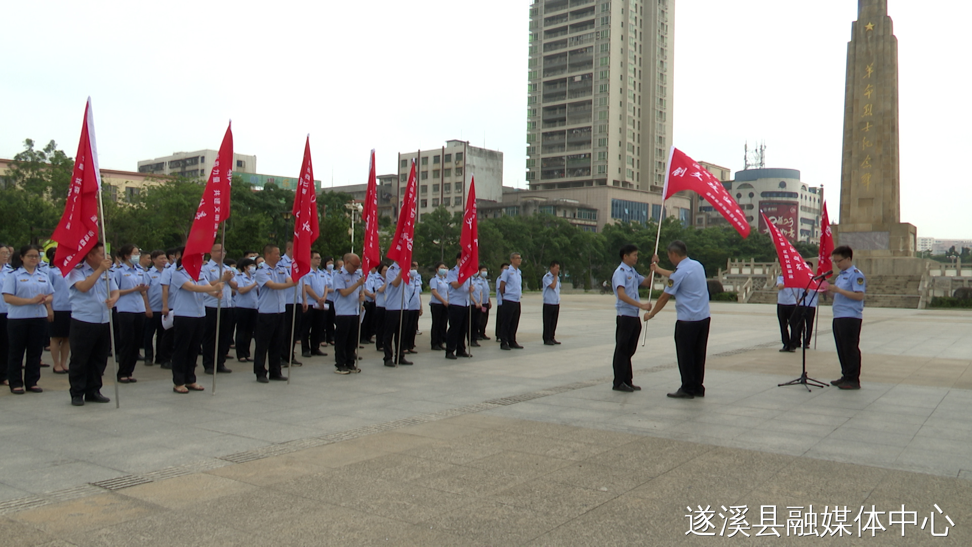 5月23日上午,遂溪县市场监督管理局在烈士纪念公园举行创建广东省文明城市誓师大会,为九支创文攻坚队授旗。