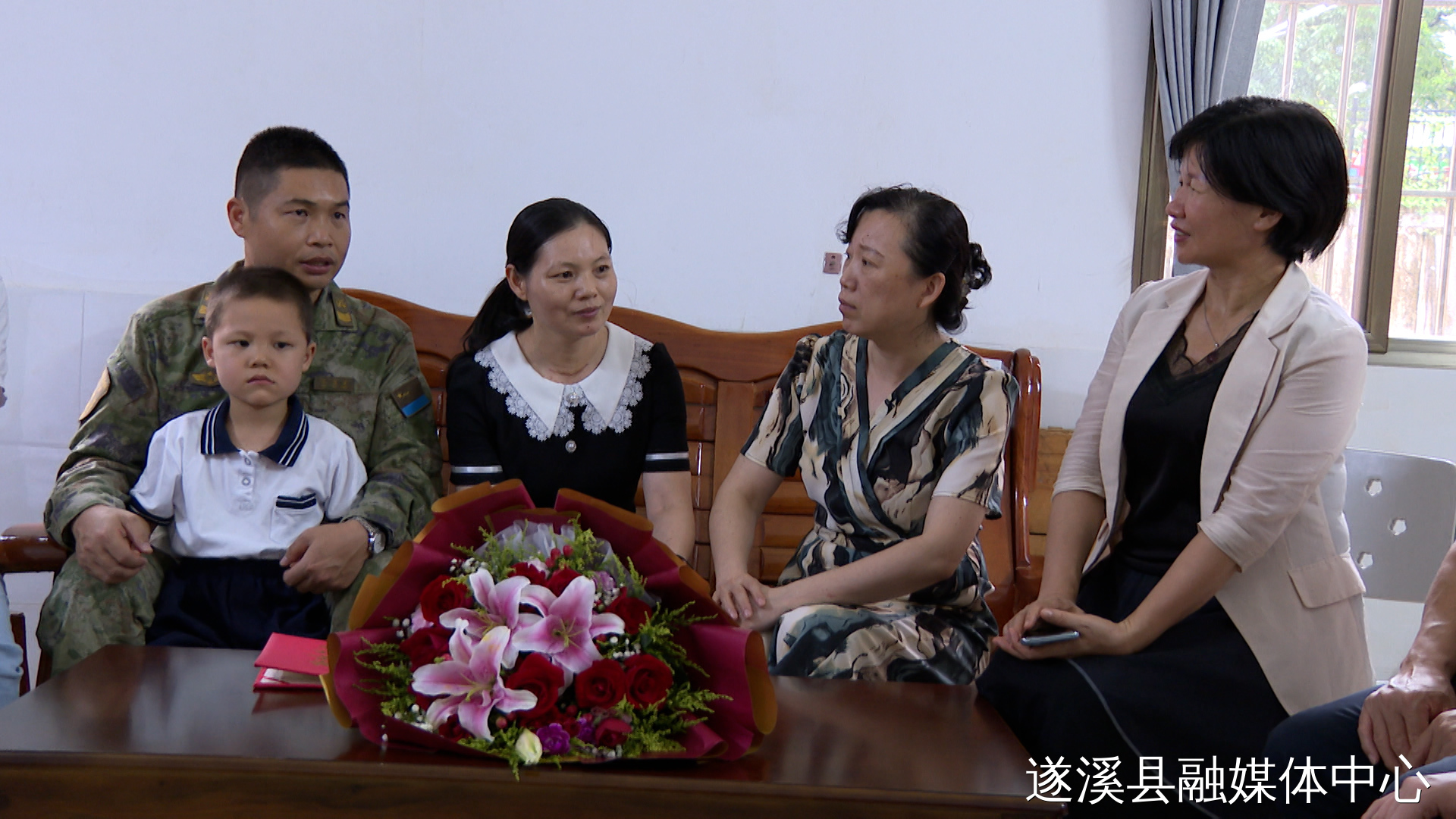 在秦瑞舟家里,湛江市妇联,湛江市退役军人事务局,遂溪县妇联,遂溪县文明办、遂溪县退役军人事务局、秦瑞舟所在单位有关领导与秦瑞舟夫妇促膝交谈,详细了解他们生活、身体健康等情况,倾听他们的故事。秦瑞舟入伍25年来,先后在台站油机员、司务长、台长等多个岗位工作,无论是在哪个岗位,他都始终对工作充满激情。十三年以来,秦瑞舟夫妻俩一直驻守在台站,兢兢业业,真正把家安在了台站,把根扎在了台站,甘愿做战鹰的指路灯塔。