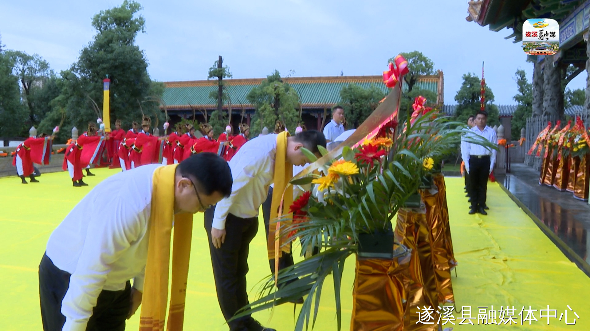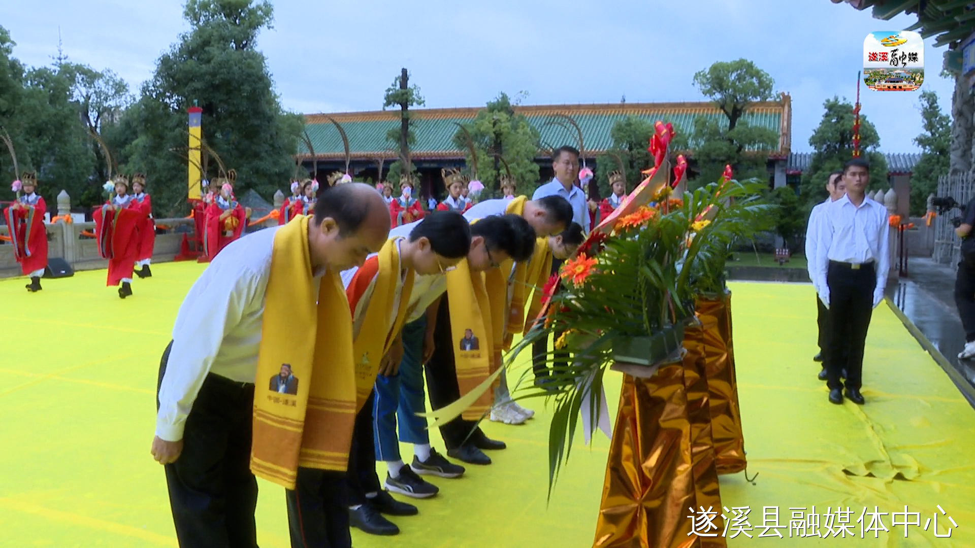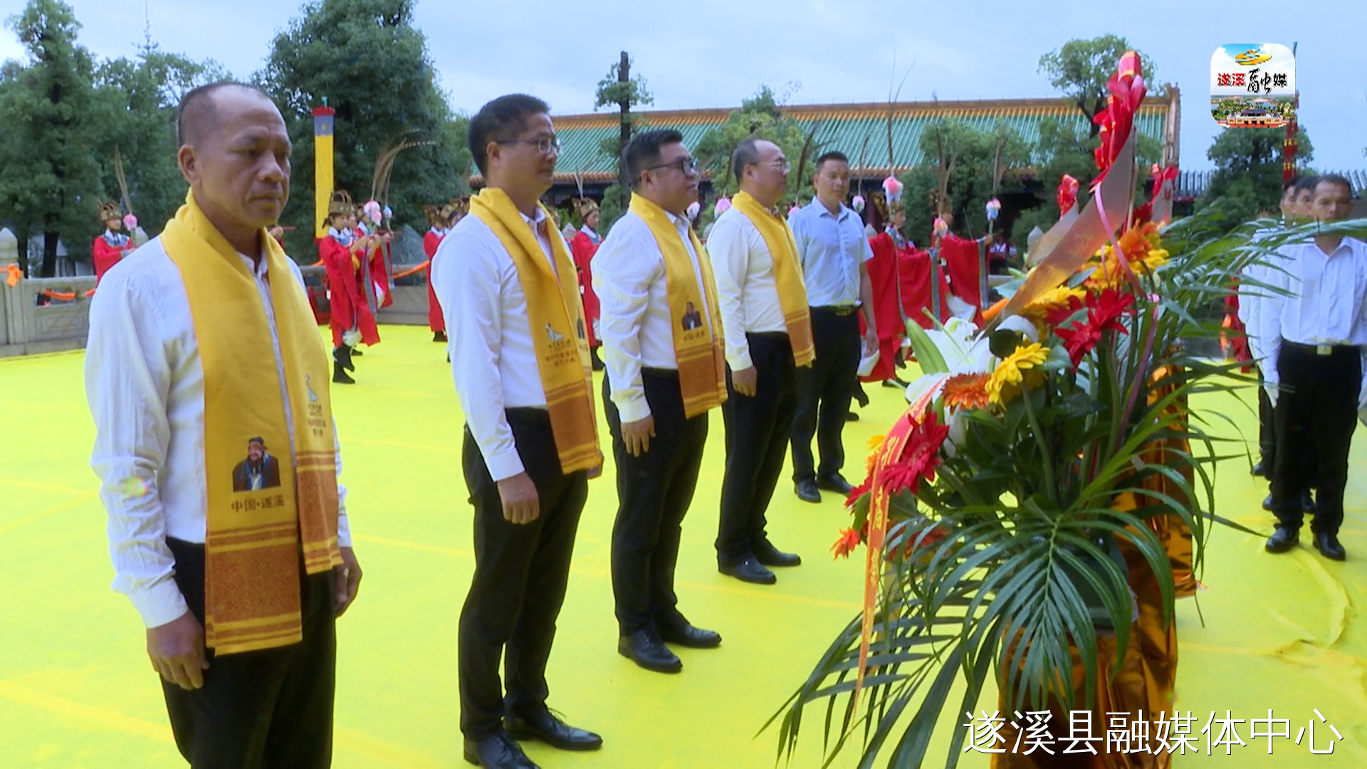 遂溪县委书记骆华庆,遂溪县委副书记、县长刘剑, 遂溪县人大常委会副主任陈辉,遂溪县政协副主席姚博允分别代表县委、县政府、县人大和县政协向孔子像敬献花篮,行三鞠躬礼。