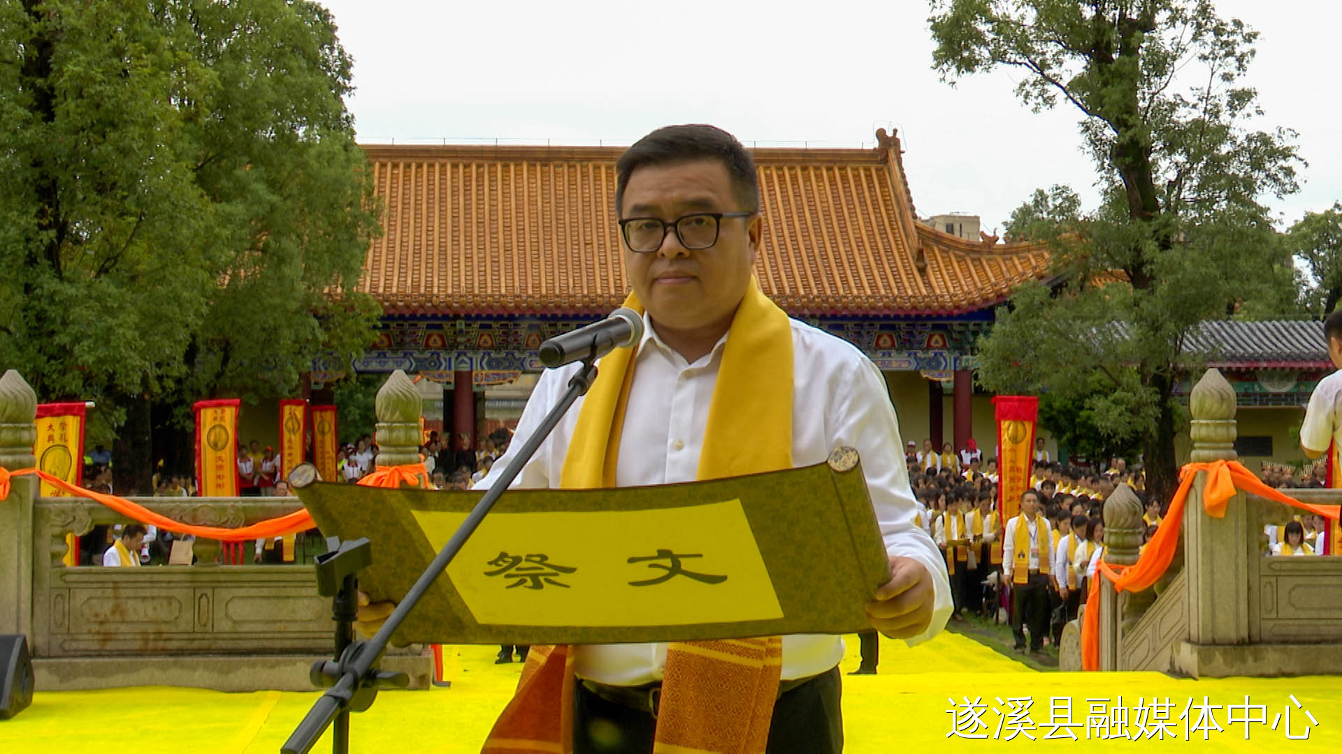 遂溪县政协主席潘汝权主持癸卯年遂溪孔庙祭孔大典。