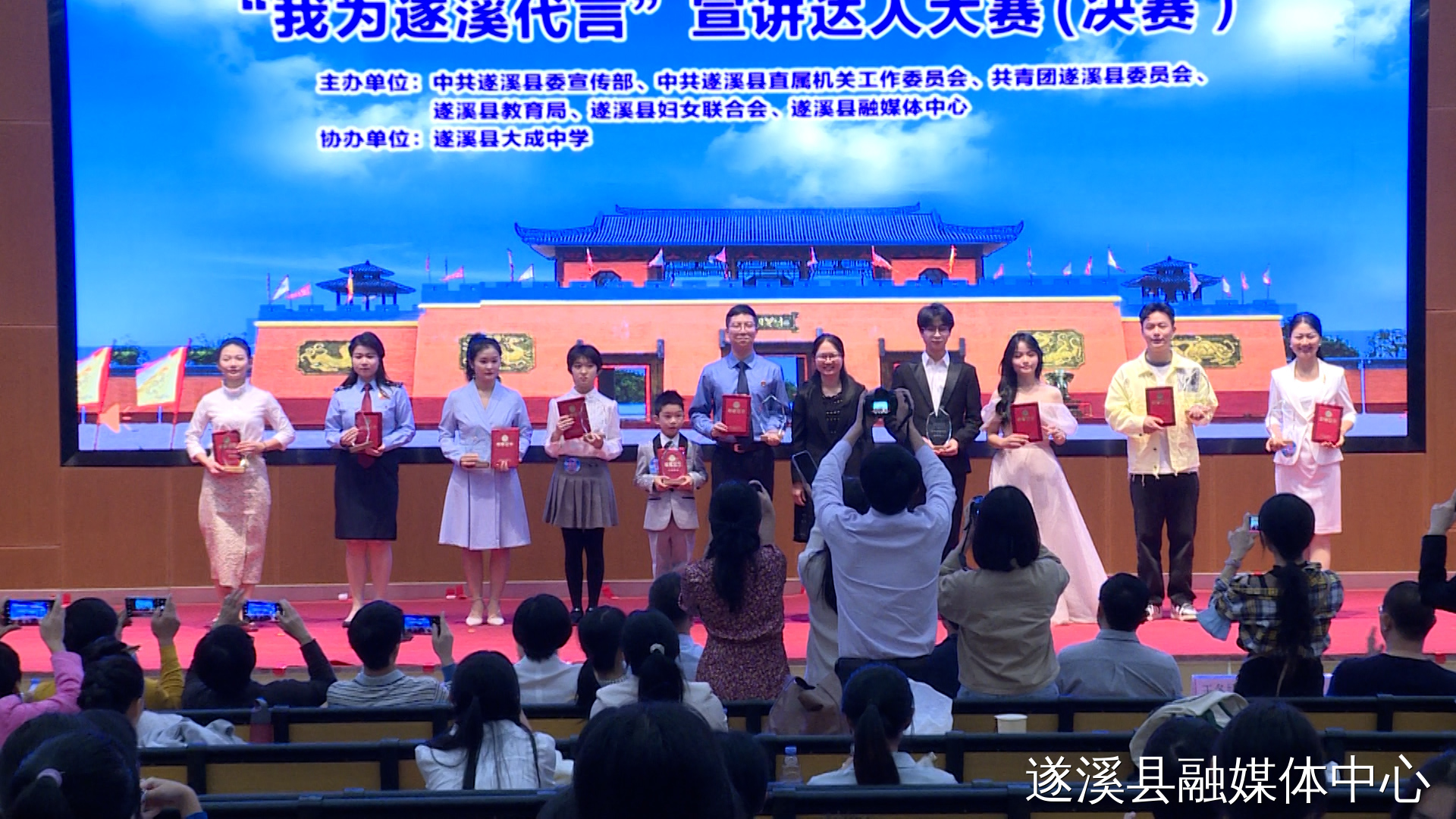 比赛现场,20名进入决赛的选手通过自我介绍+县情问答、县情知识问答,以独特新颖的视野、扣人心扉的宣讲表演,全方位、多角度地展示遂溪魅力。经过评委现场评审,王静等10名选手获评“我为遂溪代言”宣讲达人称号。梁苡杰、卢进宇获得网络评比最佳人气奖。县人民检察院、广东医科大学附属医院遂溪医院、杨柑镇人民政府、草潭镇人民政府、河头镇人民政府等5家单位获评优秀组织奖,进入决赛的20名选手获聘为“我为遂溪代言”宣讲团成员。