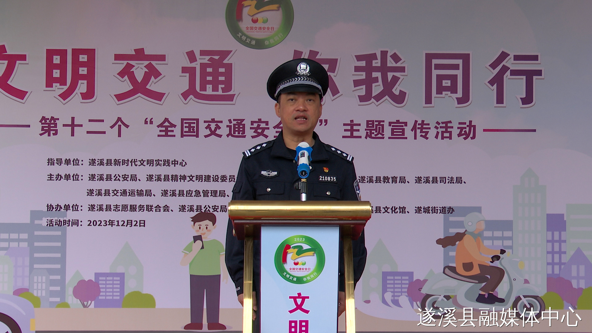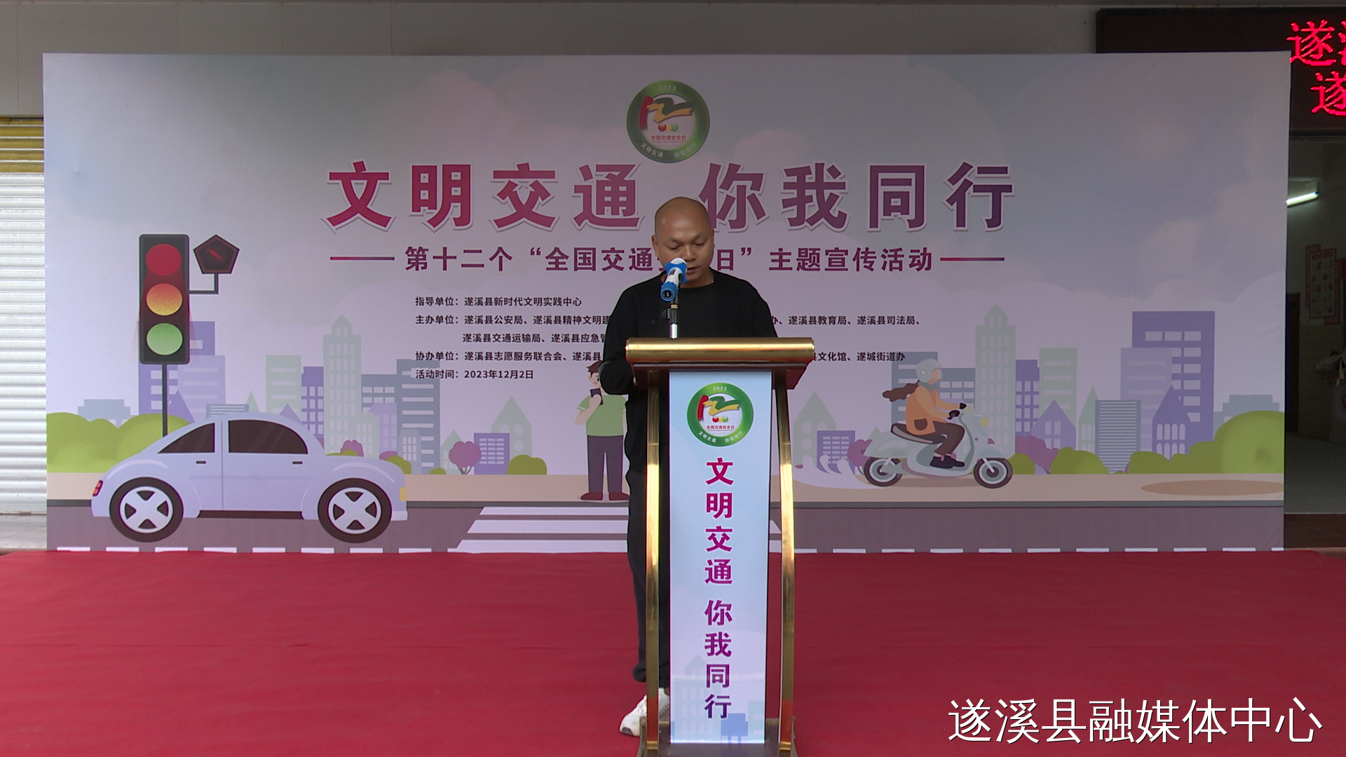 遂溪县人民政府副县长、县公安局局长林林宣布第十二个“全国交通安全日”主题宣传活动正式开始。