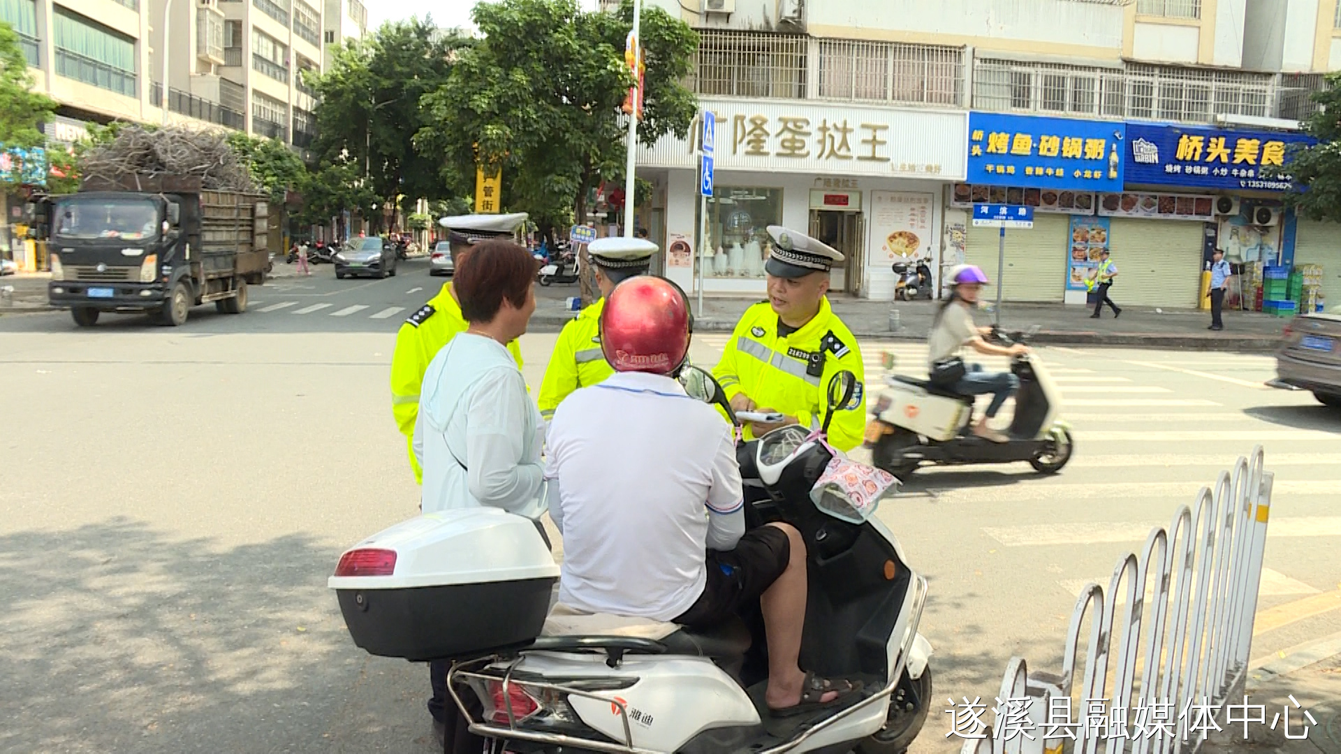 5月23日,记者在遂城街道各主要路口看到,各警种协同联动,重点对行人闯红灯,摩电驾驶人不戴安全头盔、逆行、超员、闯红灯等各类交通违法行为进行劝导和普法教育,要求违法行为人手举交通安全宣传标语牌开展交通安全宣传10分钟、将自己违法行为转发朋友圈,并对机动车违停交通违法行为进行查处。