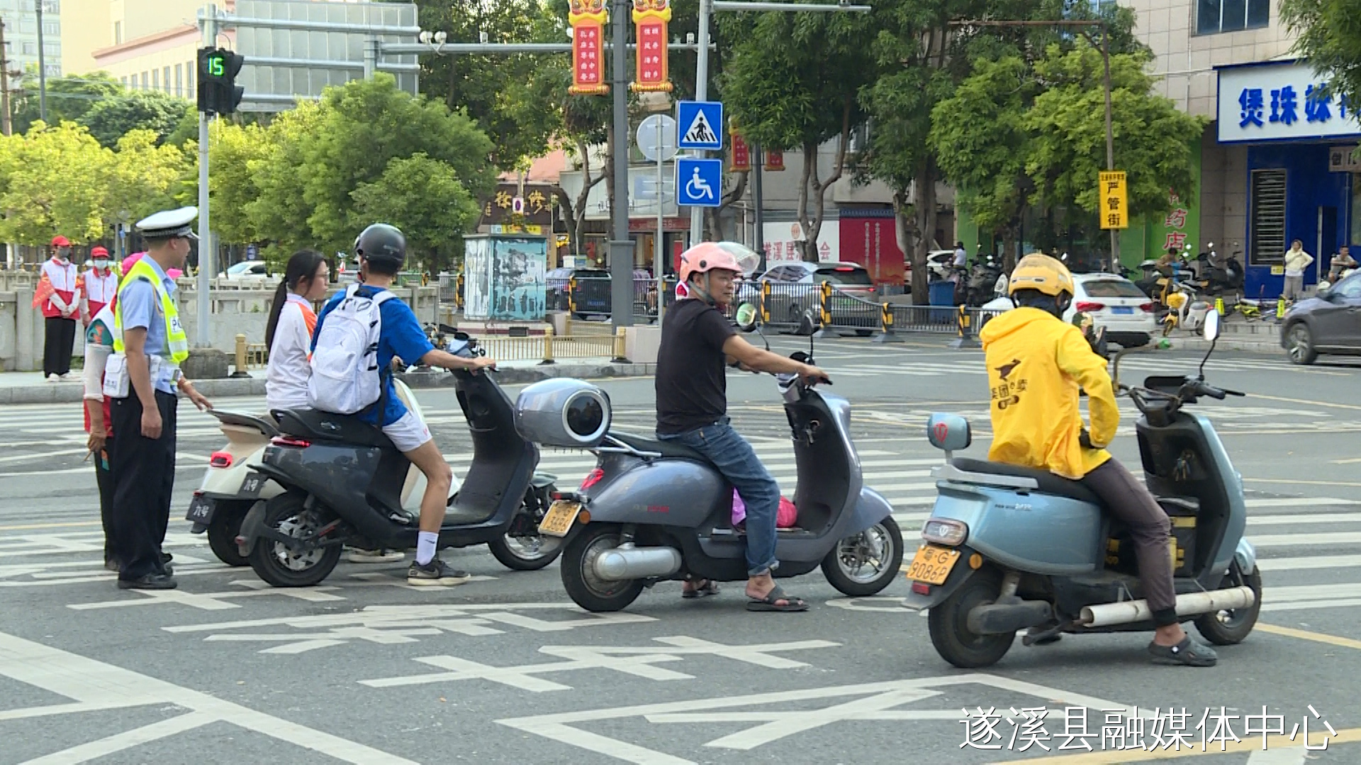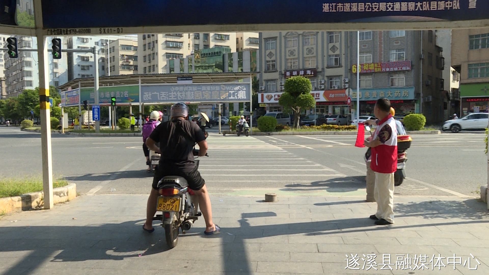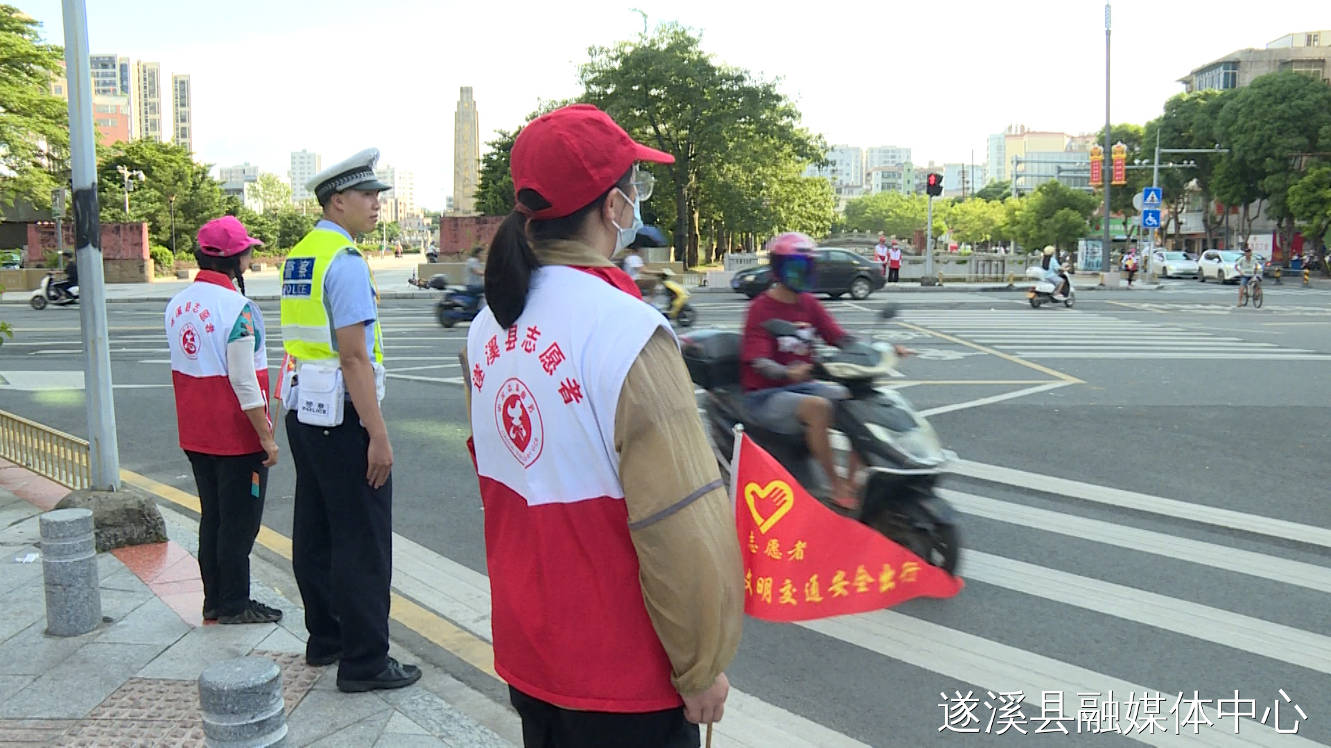 9月17日,记者在遂城各红绿灯路口看到,志愿者手执小红旗,配合交警维护交通秩序,对未佩戴安全头盔、不礼让行人、逆行、闯红灯等交通违法行为进行文明劝导教育,引导广大交通参与者自觉遵守交通法规,摒弃交通陋习,养成良好出行习惯。