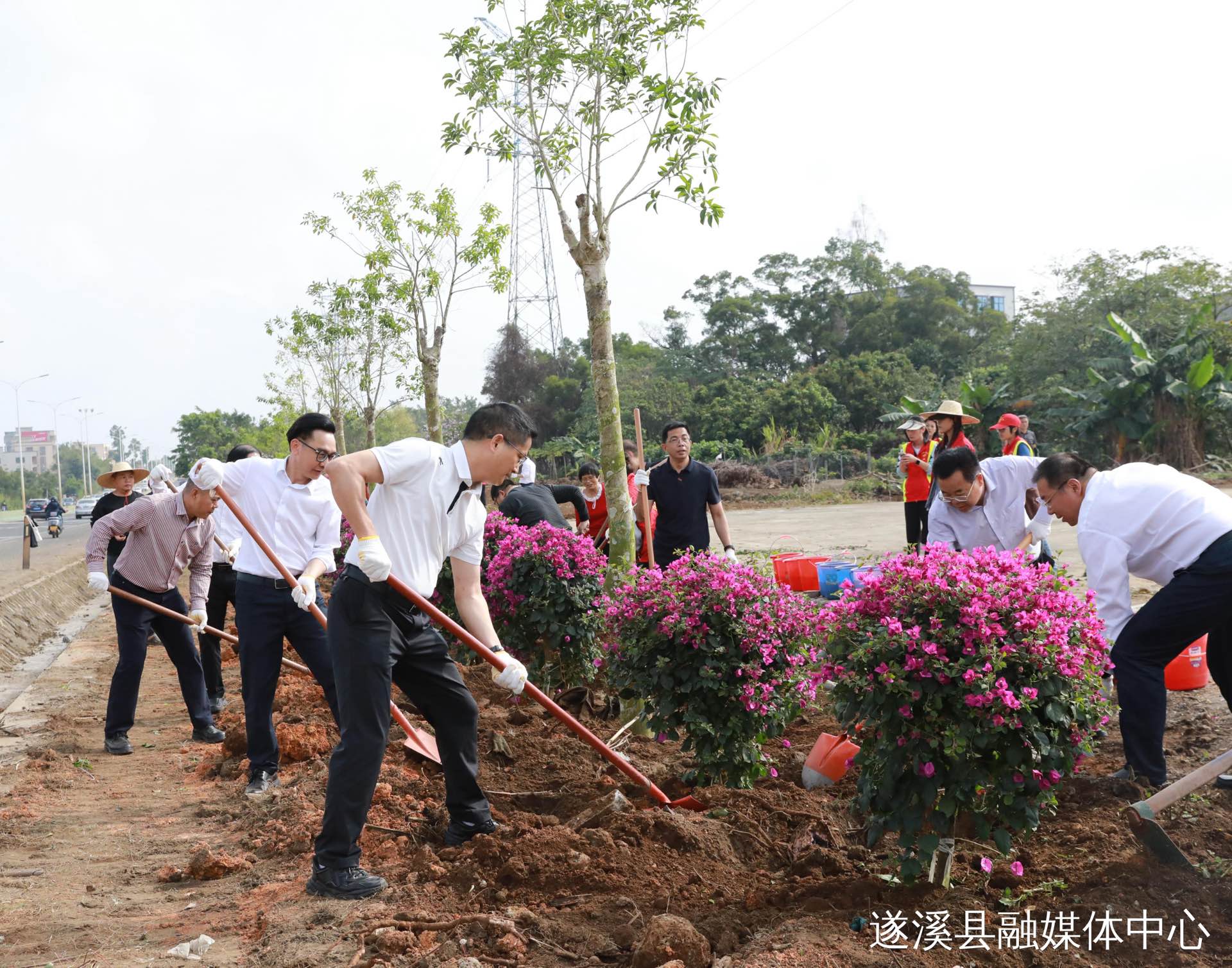 遂溪县副处级干部;县人民法院院长、县人民检察院检察长;县委办、县人大办、县府办、县政协办及县机关事务管理局、县自然资源局、团县委、遂城街道等单位人员参加义务植树活动。