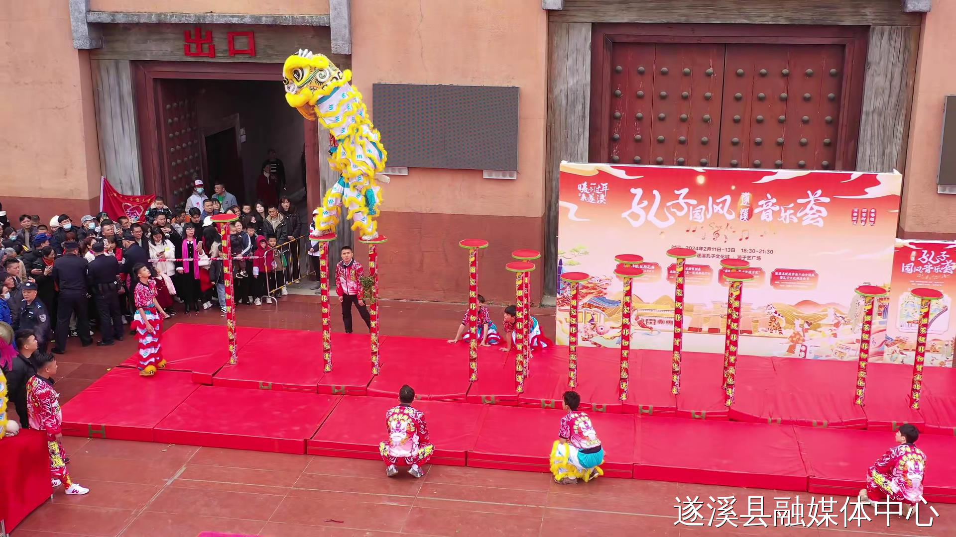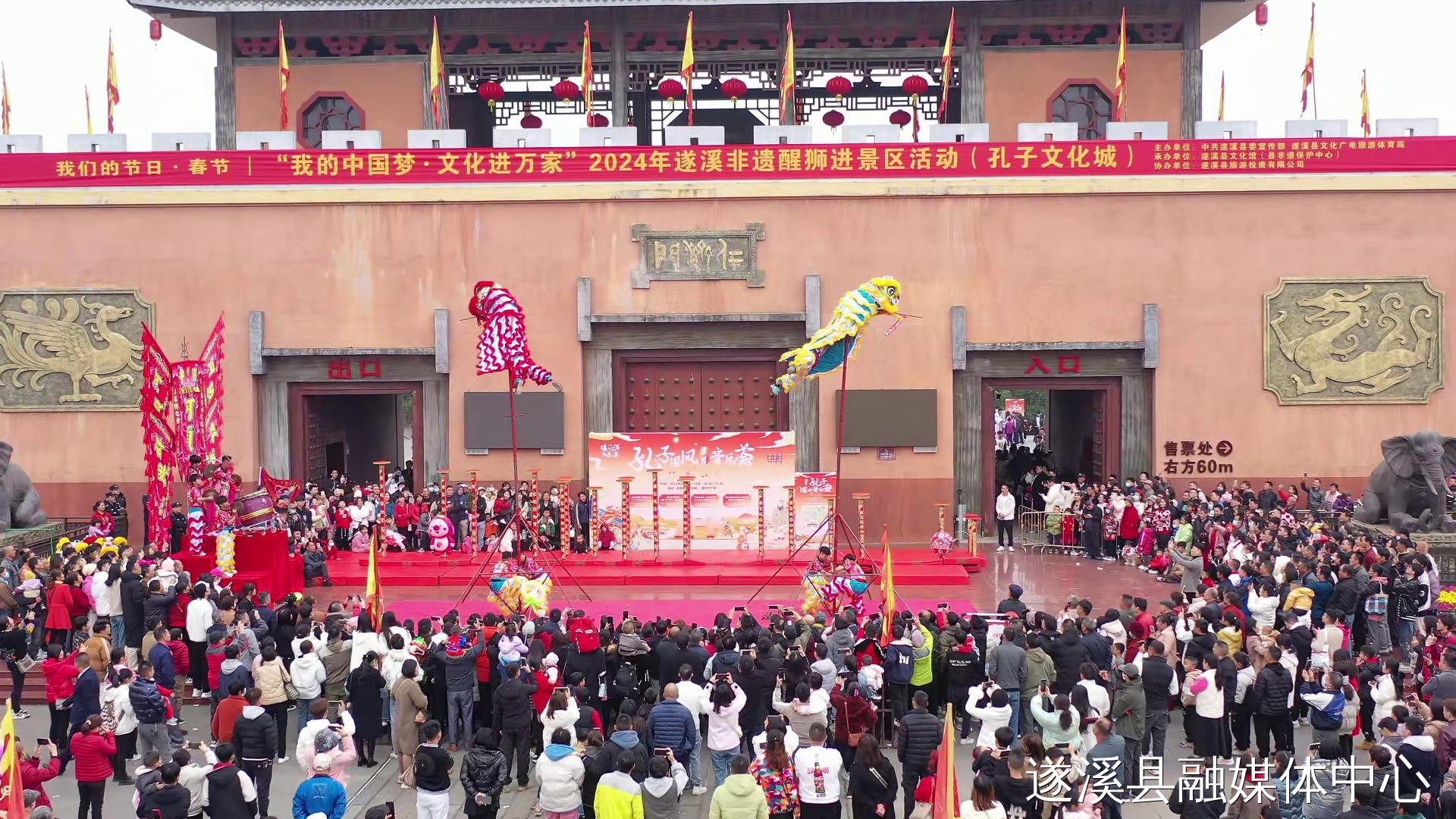 2月10日, “我们的中国梦 文化进万家” 2024年遂溪非遗醒狮进景区活动在孔子文化城上演。