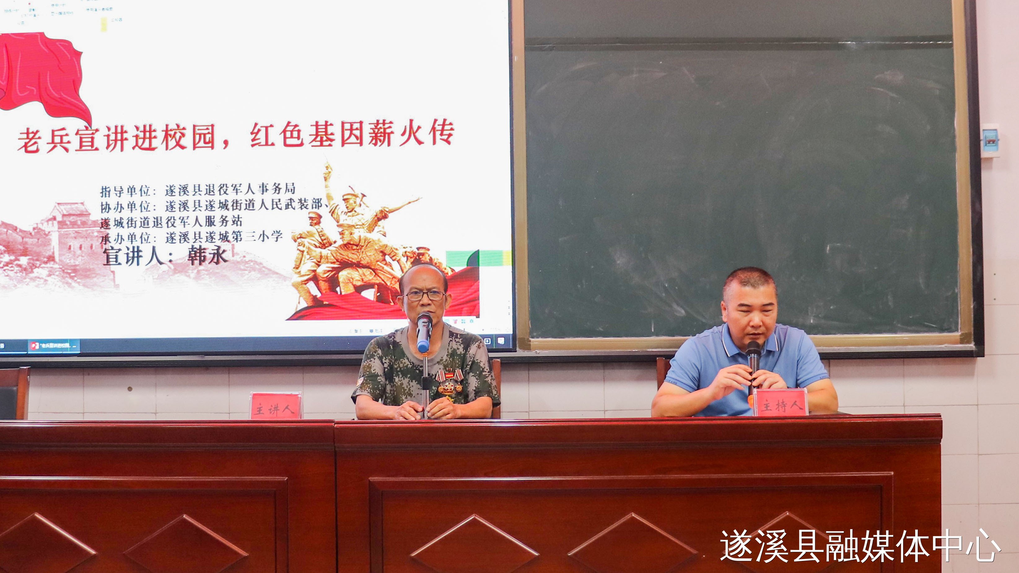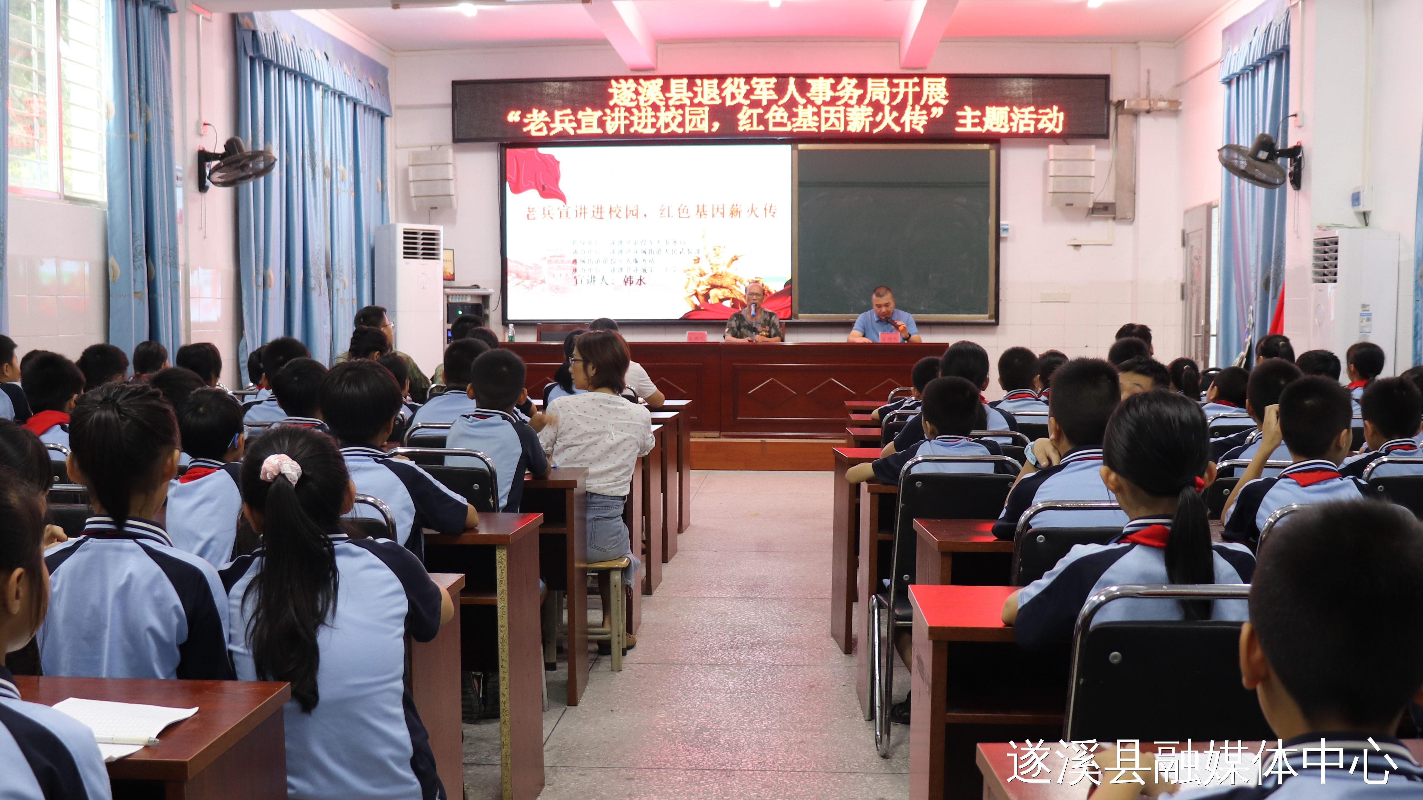 近年来,遂溪县大力加强退役军人思想政治引领,着力打造退役军人宣讲品牌——“老兵永远跟党走宣讲团”。6月25日,遂溪县退役军人事务局联合遂城第三小学开展“老兵宣讲进校园 红色基因薪火传”主题活动,遂城街道人武部、遂城街道退役军人服务站协办,现场师生约110人参加了活动。
