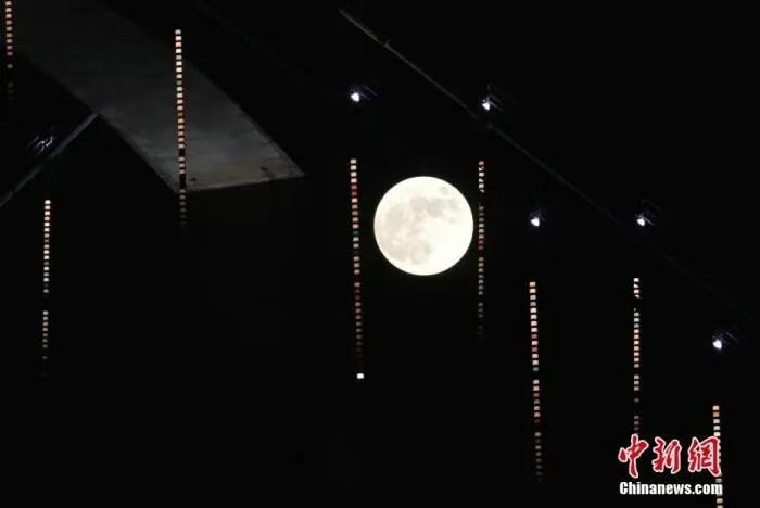 资料图:中秋节,圆月出现在福建福州上空。中新社记者 吕明 摄