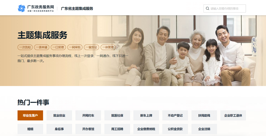 以企业群众迫切需求为切入口,以“一件事一次办”为原则, 解决企业群众“办事慢”“办事难”“多头跑”“来回跑”等突出问题,广东紧紧围绕企业从设立到注销、个人从出生到身后的全生命 周期,扎实推进政务服务事项集成化办理,切实把“一件事”主题集成服务工作与提升全省政务服务高质量发展统一起来。
