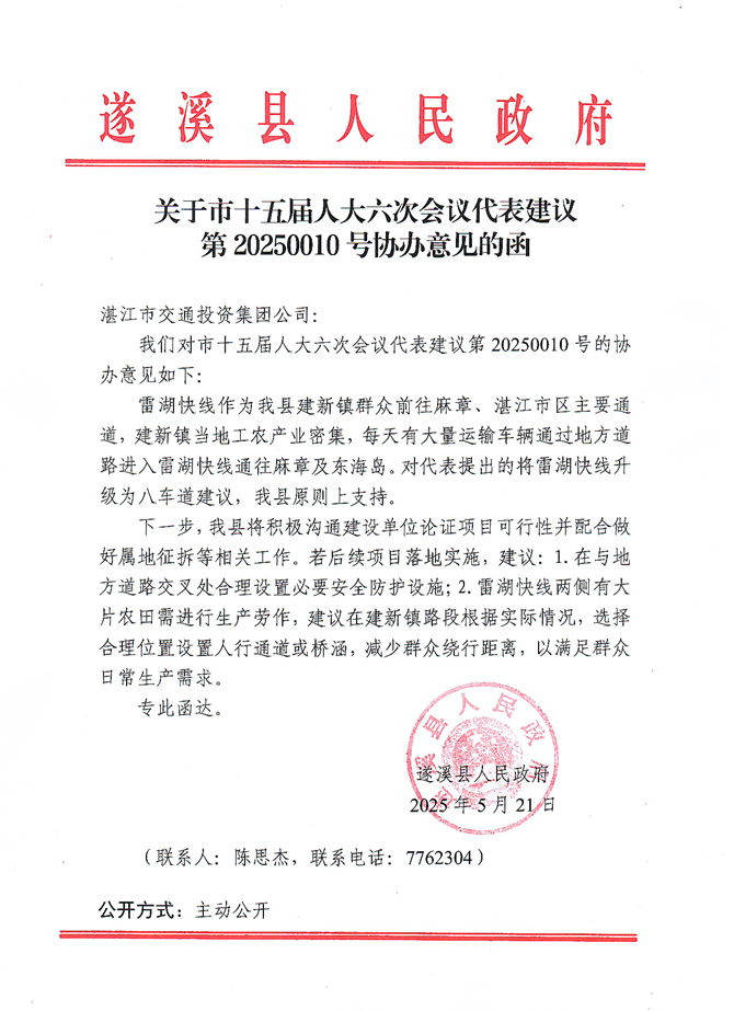 关于市十五届人大六次会议代表建议第20250010号协办意见的函