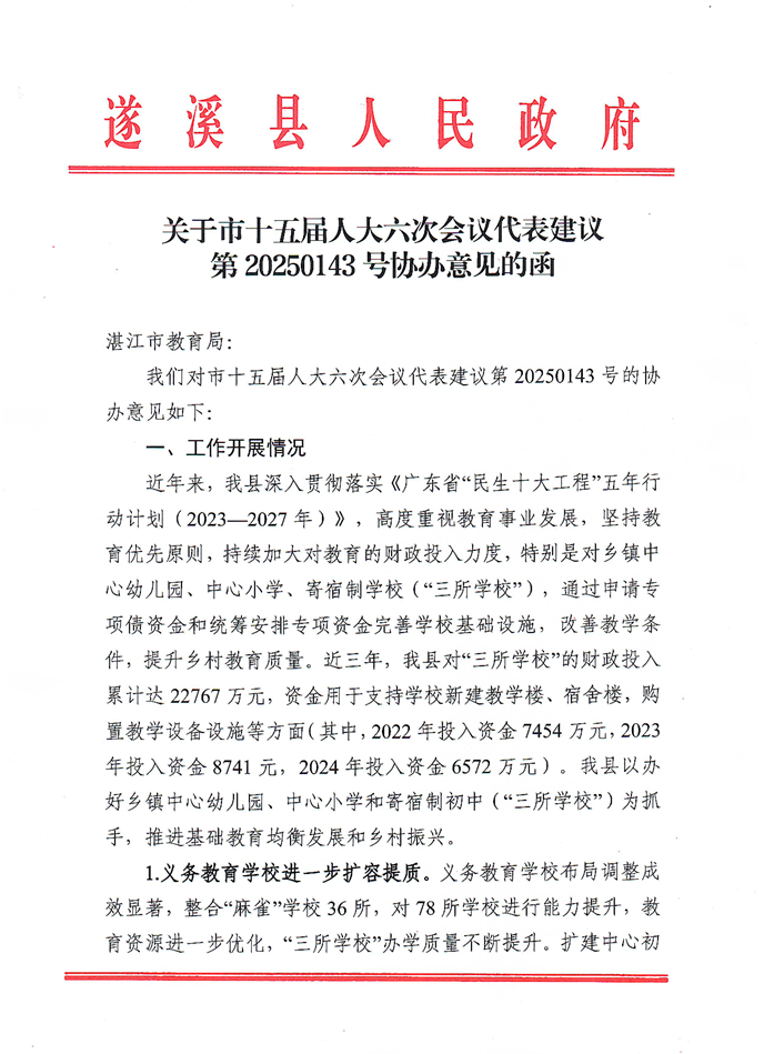 关于市十五届人大六次会议代表建议第20250143号协办意见的函